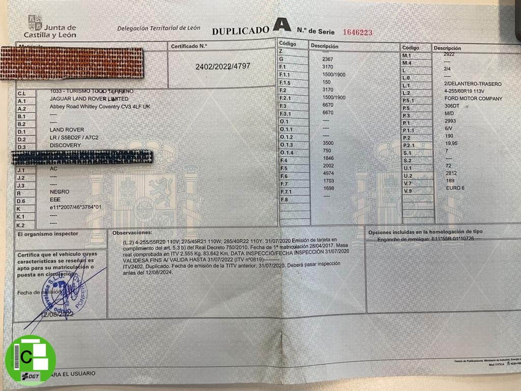 ATENDEMOS SOLO CON CITA PREVIA LAND ROVER DISCOVERY 5 3.O TDV6 HSE 258 CV 7 PLAZAS 4X4 MUY EQUIPADO, FINANCIACION A SU MEDIDA SIN ENTRADA, POSIBLE ENTREGA EN CUALQUIER PUNTO DE ESPAÑA, DISTINTIVO AMBIENTAL TIPO C, GARANTIA DE 12 MESES, EXTRAS: - Asientos ventilados delanteros y traseros - Techo solar panoramico - Head play (proyeccion de velocidad, señales y carril en la luna delantera) - Enganche de remolque con apertura electrica - Sonido Meridian - Navegador - Cristales con prosteccion solar - Cambio automatico con Levas en volante y secuencial. - 7 plazas electricas. - Sistema de navegación táctil. - Bola de remolque eléctrica. - Sistema de aparcamiento delante y atras acustico con cámara. - Avisador de cambio carril con visión pantalla. - Llantas de aleacion - Luces bixenon. - Lunas traseras oscurecidas. - Suspension neumatica adaptativa. - Volante multifuncionales. - Control de velocidad. - Sistema de comando por voz. - Alarmar voluminetrica. - Asientos calentados delanteros y traseros. - Asientos electricos con memoria - Porton electrico trasero. - Arranque sin llave. - Volante calefactable - Camara de marcha atras - Sensores de aparcamiento delante y atras Consulten mas extras, el anuncio puede tener errores de publicacion.
