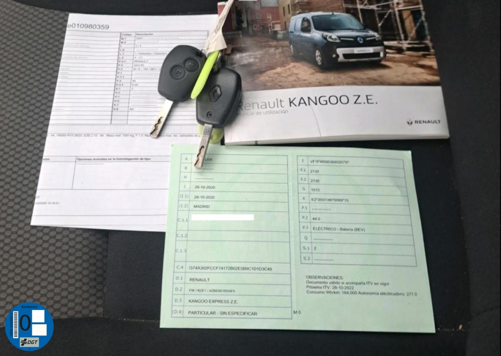 Renault Kangoo ZE furgon con Bateria en propiedad de 33kWH y autonomia real de 200 km, cambio automatico, Etiqueta de 0 emisiones, PRECIO 5785 EUROS MAS IVA TOTAL 7000 EUROS, GARANTIA DE 12 MESES, FINANCIACION A SU MEDIDA SIN ENTRADA, POSIBILIDAD DE ENTREGA EN CUALQUIER PUNTO DE ESPAÑA, UBICACION ACTUAL- BARCELONA, PENDIENTE DE TRASLADO A MALAGA, extras: -ORDENADOR DE ABORDO -BLUETOOTH -RADIO -AIRE ACONDICIONADO -BACA METALICA EN EL TECHO ANUNCIO PUEDE TENER ERRORES DE PUBLICACION